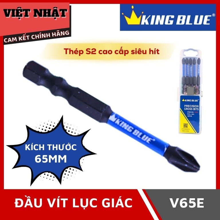 - 🛠️ Đầu vít lục giác Kingblue-V65E được làm từ thép S2 cao cấp, đảm bảo độ bền và hiệu suất cao.