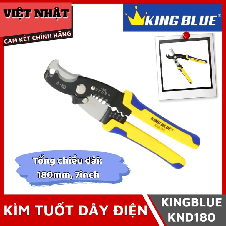 - Kìm tuốt dây điện Kingblue KND180 có tổng chiều dài 180mm, tương đương 7 inch. 📏