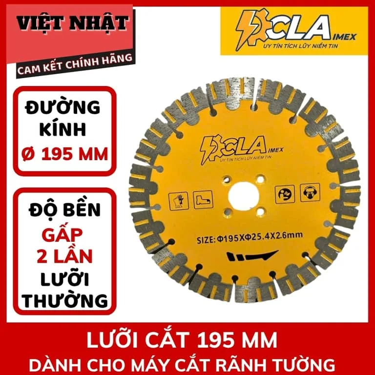 ✅ Đường kính lớn 195mm: Phù hợp cho các công việc cắt sâu, cắt rãnh lớn trong các công trình dân dụng và công nghiệp.