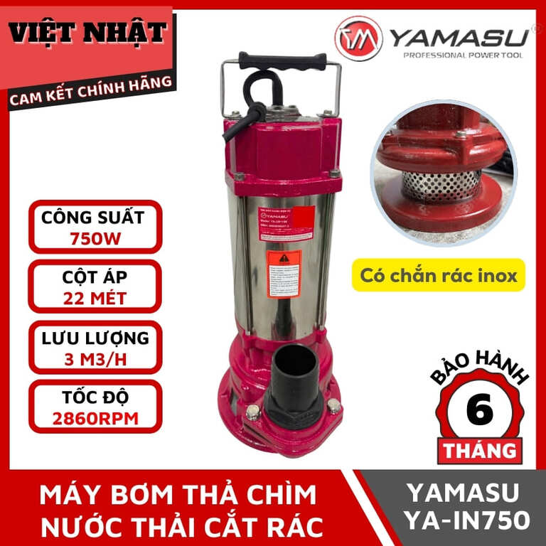 - Máy bơm Yamasu YA-IN750 có công suất 750W, cung cấp năng lượng đủ cho việc bơm nước thải.