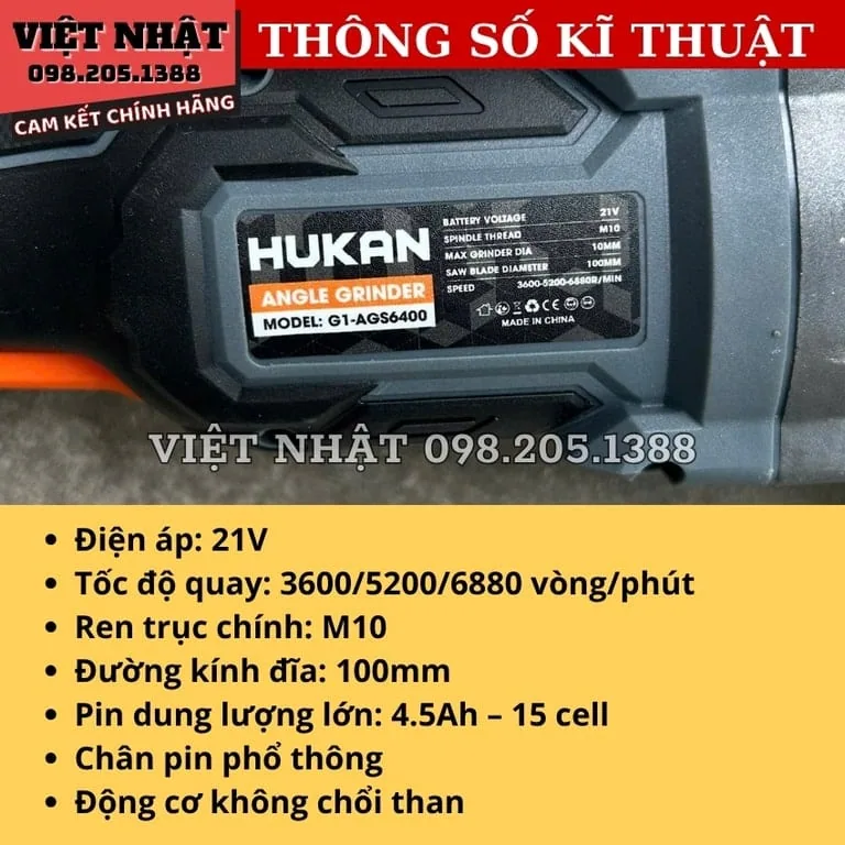 Máy cắt mài 3 tốc độ dùng pin Hukan G1-AGS6400