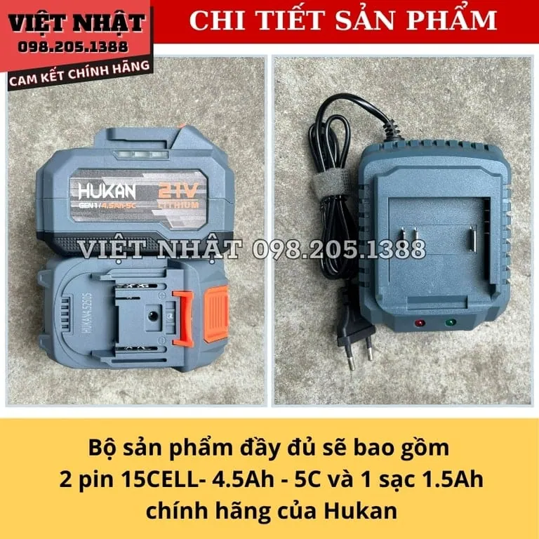 - Trang bị 2 pin 15CELL 4.5Ah dung lượng cao, kèm sạc 1.5Ah, cho thời gian sử dụng lâu dài và sạc nhanh chóng.