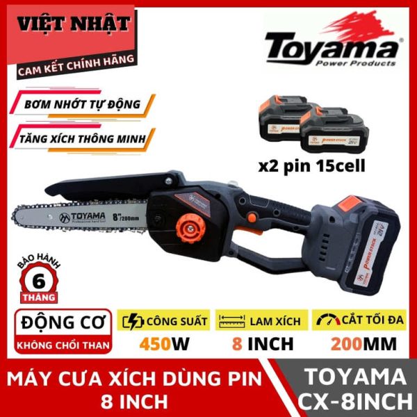 – Máy cưa xích Toyama CX-8INCH với kích thước 8inch, bơm nhớt tự động.