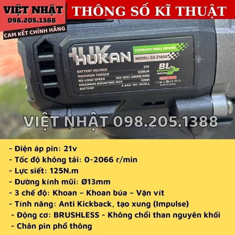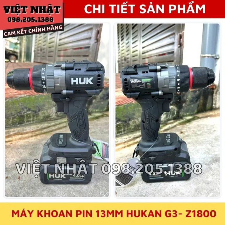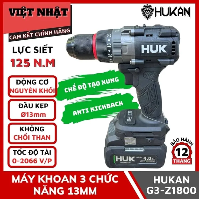 Máy khoan 21V Hukan 13MM ( có khóa trục ) G3- Z1800