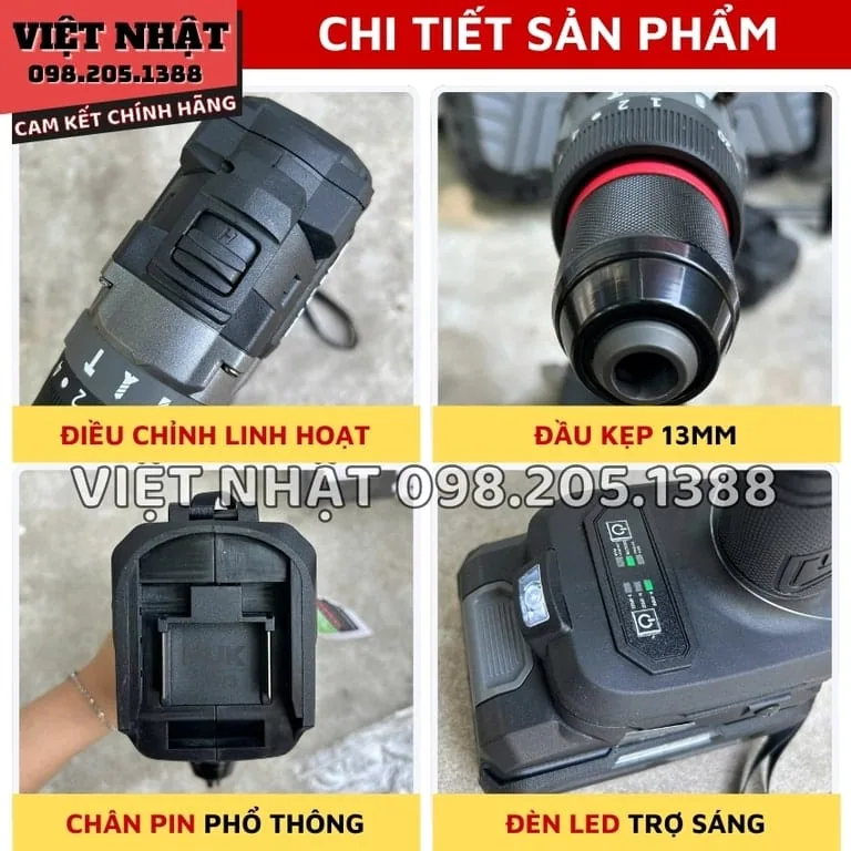 – 3 chế độ: Khoan – Khoan búa – Vặn vít – Xử lý linh hoạt mọi công việc từ gia đình đến công trình