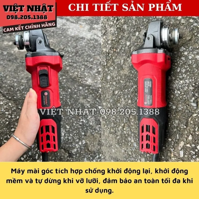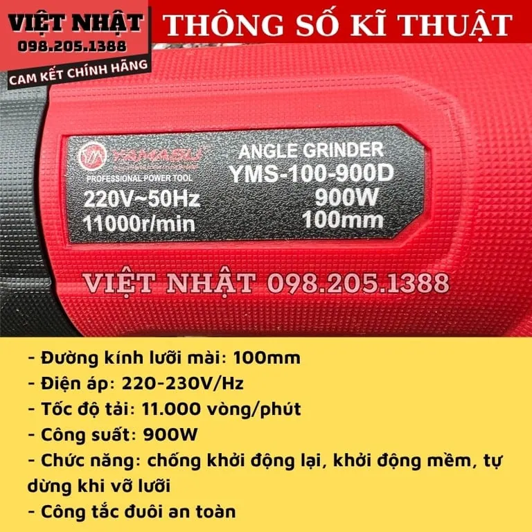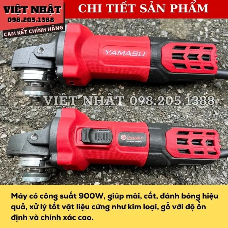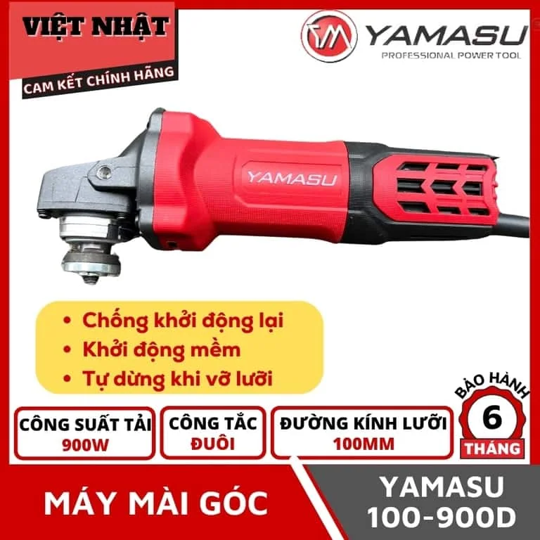 Máy mài góc Yamasu YMS-100-900D công tắc đuôi nổi bật với thiết kế hiện đại và tính năng an toàn, phù hợp cho cơ khí, xây dựng và sửa chữa.