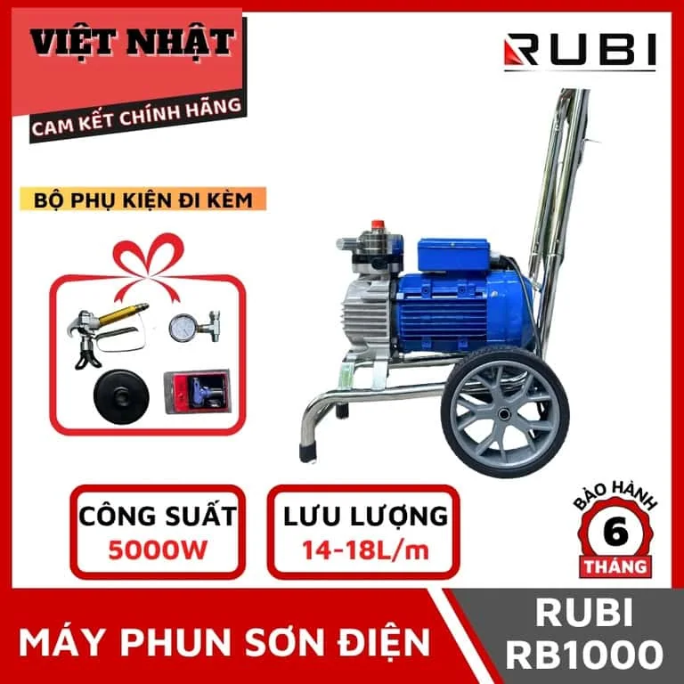 Công suất5: Động cơ mạnh mẽ, hoạt động bền bỉ trong thời gian dài, thích hợp cho các công trình sơn công nghiệp, nhà xưởng, tòa nhà cao tầng.