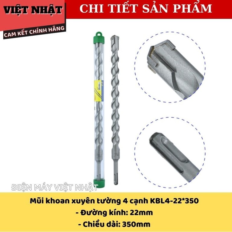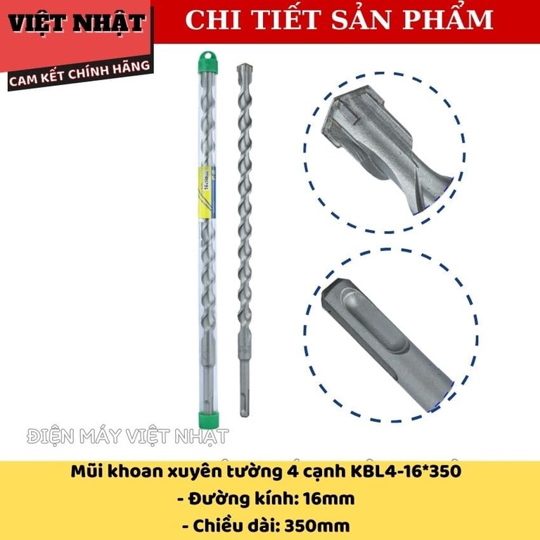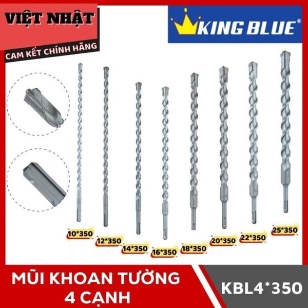 – Mũi khoan tường 4 cạnh Kingblue KBL4*350 với nhiều kích thước: 10*350, 12*350, 14*350, 16*350, 18*350, 20*350, 22*350, 25*350.