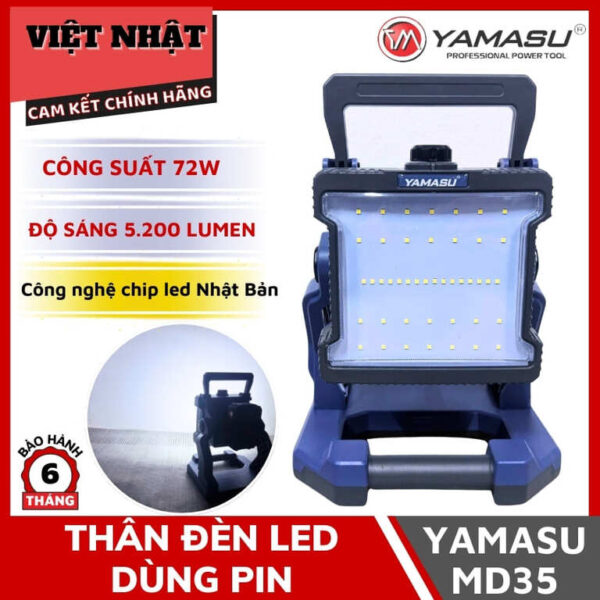 Thân đèn led Yamasu YMS-MD35 có công suất 72W, đảm bảo ánh sáng đủ mạnh cho nhu cầu sử dụng. Sản phẩm được bảo hành 6 tháng, mang lại sự yên tâm cho người dùng. Với công nghệ chip led Nhật Bản, đèn mang lại hiệu suất chiếu sáng cao. 💡